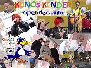 Kinder-Spendaculum am Haidplatz 27.03.2004 Donikkl liebt KUNO, KUNO liebt Elli. Vier politische Schwergewichte haben sich für uns in die Waagschale geworfen. Die Sammelaktion am 27. März 2004 auf dem Haidplatz hat alleine 12.661,66 Euro (davon 9.241,66 Euro in Münzen mit einem Gewicht von 263,8 kg für KUNO erbracht. Übrigens: wir haben auch 48,36 DM