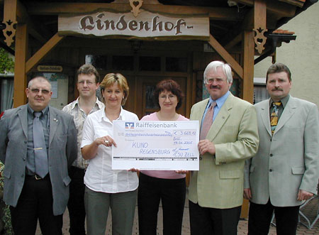 Lions spenden 10.000 Euro für KUNO Wie Lions-Präsident Dr. Josef Mühlbauer bei der Überreichung der Spende an den Verwaltungsdirektor des Universitätsklinikums, Dr. Hans Brockard, ausführte, passe diese zum Anliegen des Clubs, auch oder gerade 'Kindern in Not' zu helfen, wobei man sich auf die Notfälle in der Region konzentrieren wolle.