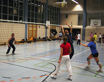 Tombolaerlös der Musterhauseröffnung in Hagelstadt an KUNO gespendet — Partner des FTSV selbst am Volleyball beim Faschingsturnier
