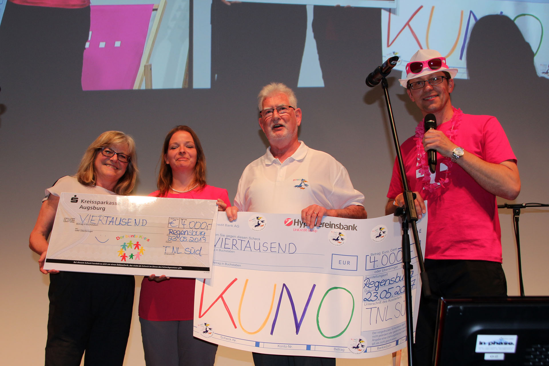 Die Technik Niederlassung Süd der Deutschen Telekom übergab beim Mitarbeiterfest an KUNO einen Spendenscheck über 4.000 Euro.