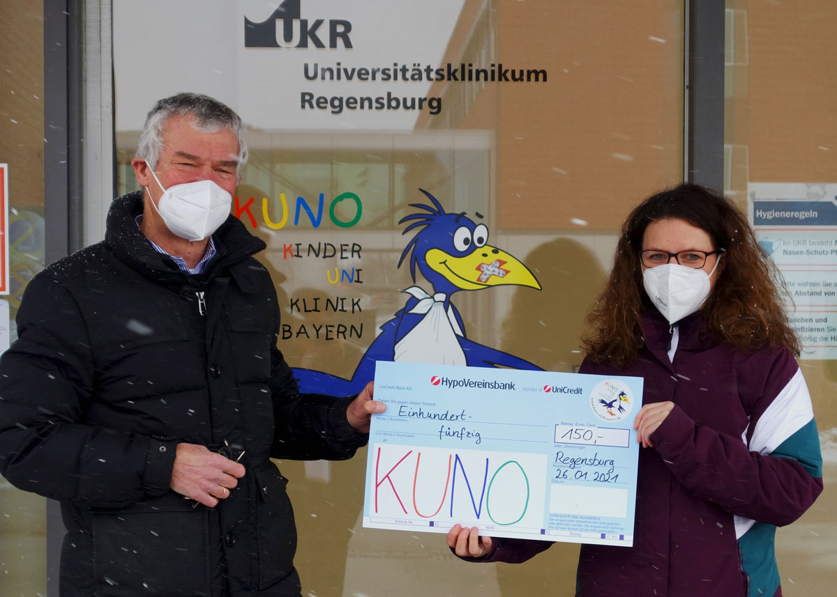 Im Rahmen der Aktion "Falkenstein leuchtet" fand auch eine Gemälde-Versteigerung zu Gunsten von KUNO statt, deren Erlös durch die örtliche Raiffeisenbank auf runde 1.000 Euro aufgestockt wurde.