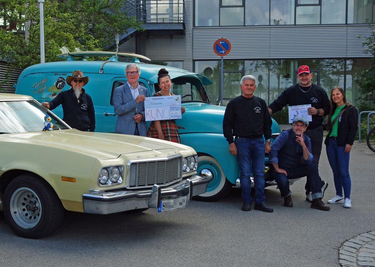 Eine Abordnung der US Car Freunde Bayerwald hat sich - inklusive amerikanischer Wagen - auf den Weg nach Regensburg gemacht, um eine Spende aus der Vereinskasse an KUNO zu übergeben.