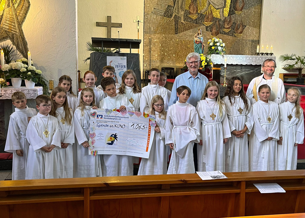 Bei der Erstkommunion der Kinder aus Schirmitz, Bechtsrieth und Trebsau hat die Kommuniongruppe beschlossen, auf Gegengeschenke zu verzichten und stattdessen für KUNO zu sammeln.