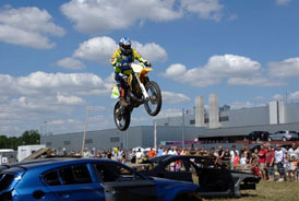 Neben der KUNO-Tombola sorgten zahlreiche weitere Attraktionen für spannende Abwechslung: Vizeweltmeister der Welttourenwagen-Meisterschaft Dirk Müller verteilte an die Besucher Autogramme, und ein Motorrad-Weitspringen hat trotz des sonnigen Wetters bei manchen Zuschauern eine Gänsehaut verursacht. Jugendliche und Schulabgänger konnten sich im Bildungszentrum über Ausbildungsmöglichkeiten bei BMW informieren und für die Kleinen war ein umfangreiches Animationsprogramm geboten. |