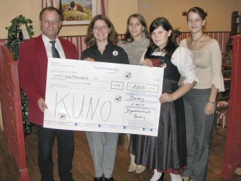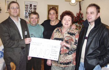 Mitarbeiter des Versorgungsamts Regensburg sammeln für KUNO 10.11.2004 1.200 Euro konnte mit der Scheckübergabe am 10.11.2004 an KUNO übergeben werden. Der Betrag setzt sich zusammen aus einer vom Personalrat organisierten