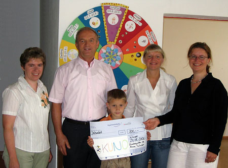 Kindergarten St. Anna spendet für KUNO 27.08.2006 Durch Aktionen und Feste unterstützt der Kindergarten St. Anna in Winzer regelmäßig gemeinnützige und soziale Projekte. Auch KUNO darf sich über eine großzügige