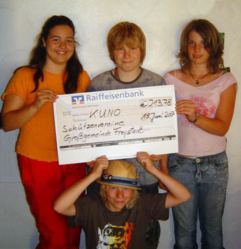 Bürger und Volksfestschießen in Freystadt 19.06.2007 Als Resultat dieser Aktionen für KUNO konnten insgesamt 213,78 Euro eingenommen werden. Dank einer großzügen privaten Spende konnte dieser Betrag auf eine Gesamtspendensumme von
