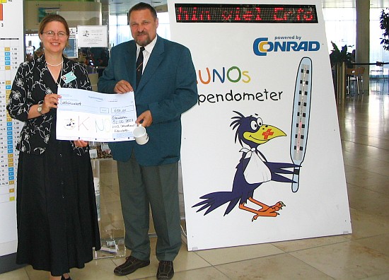 Die Vertreter dreier engagierter Chöre überreichten am Freitag, den 02.03.2007 eine Spende in Höhe von 650 Euro zugunsten von KUNO. Die Sangesfreunde hatten im Advent Benefiz-Konzerte veranstaltet und für die geplante 'Kinderuniklinik auf zwei Beinen' gesammelt.