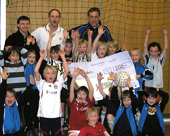 Tore für KUNO 05.03.2007 Kleine Kicker spenden 200 Euro für Kinderuniklinik — 110 Beine erspielten 20 Tore und 200 Euro für KUNO. Fünf Fußballmannschaften aus Regensburg und Umgebung kickten für