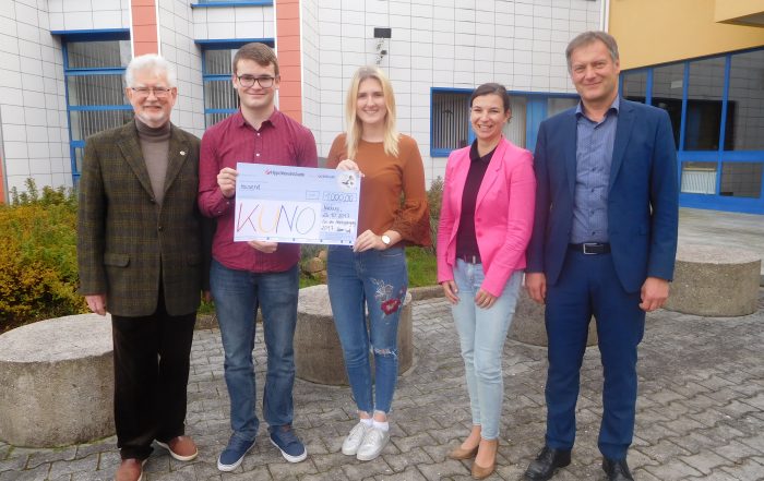 Die Trainees des Unternehmensverbundes Oberpfalz Mittelfranken spenden Erlös aus Führungskräfte-Nachmittag. Nachdem sich die Firmen des Unternehmensverbundes angeschlossen hatten konnten 2.000 Euro an KUNO übergeben werden.