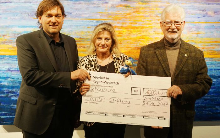 Die Arberlandklinik Viechtach gibt Künstlern die Gelegheit ihre Werke in deren Hallen auszustellen und dem Publikum zu präsentieren. Die Künstlerin Gaby Biller spendete den Erlös in Höhe von 1.000 Euro aus dem Verkauf ihrer Bilder an KUNO.