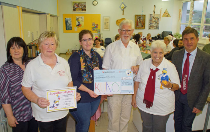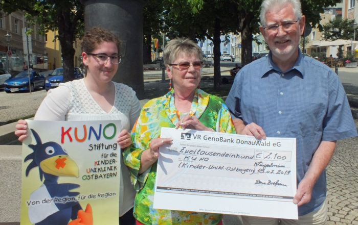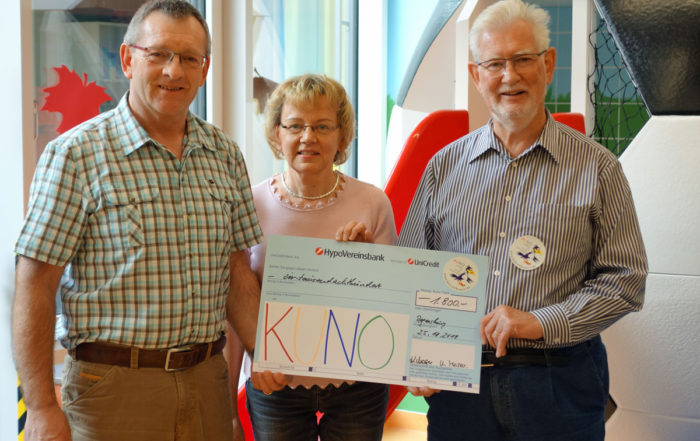 Dora Breßem fertigt bereits seit Jahren kleine Schutzengel und gib diese gegen eine Spende ab. Der Erlös fließt immer wieder auch an KUNO und deshalb konnte Frau Breßem in Grafenau 2.100 Euro an das dankbare Team von KUNO übergeben.