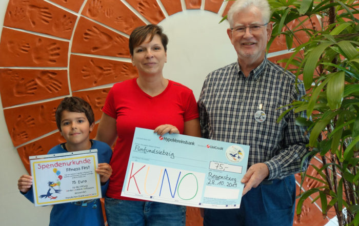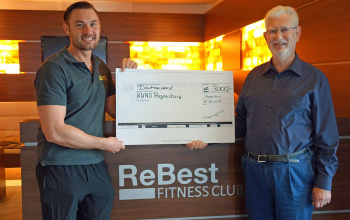 Der ReBest Fitness Club Regensburg hat auf Initiative von Martin Pietzsch vier Monate lang die Anmeldegebühr für Neukunden an KUNO gespendet. So kamen 3.ooo Euro für die Stiftung zusammen.