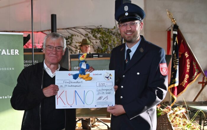 Das Patenbitten anlässlich des bevorstehenden 150-jährigen Gründungsfests der FF Luckenpaint wurde letztes Wochenende groß gefeiert - trotzdem war auch noch Zeit für eine Spendenübergabe an KUNO!