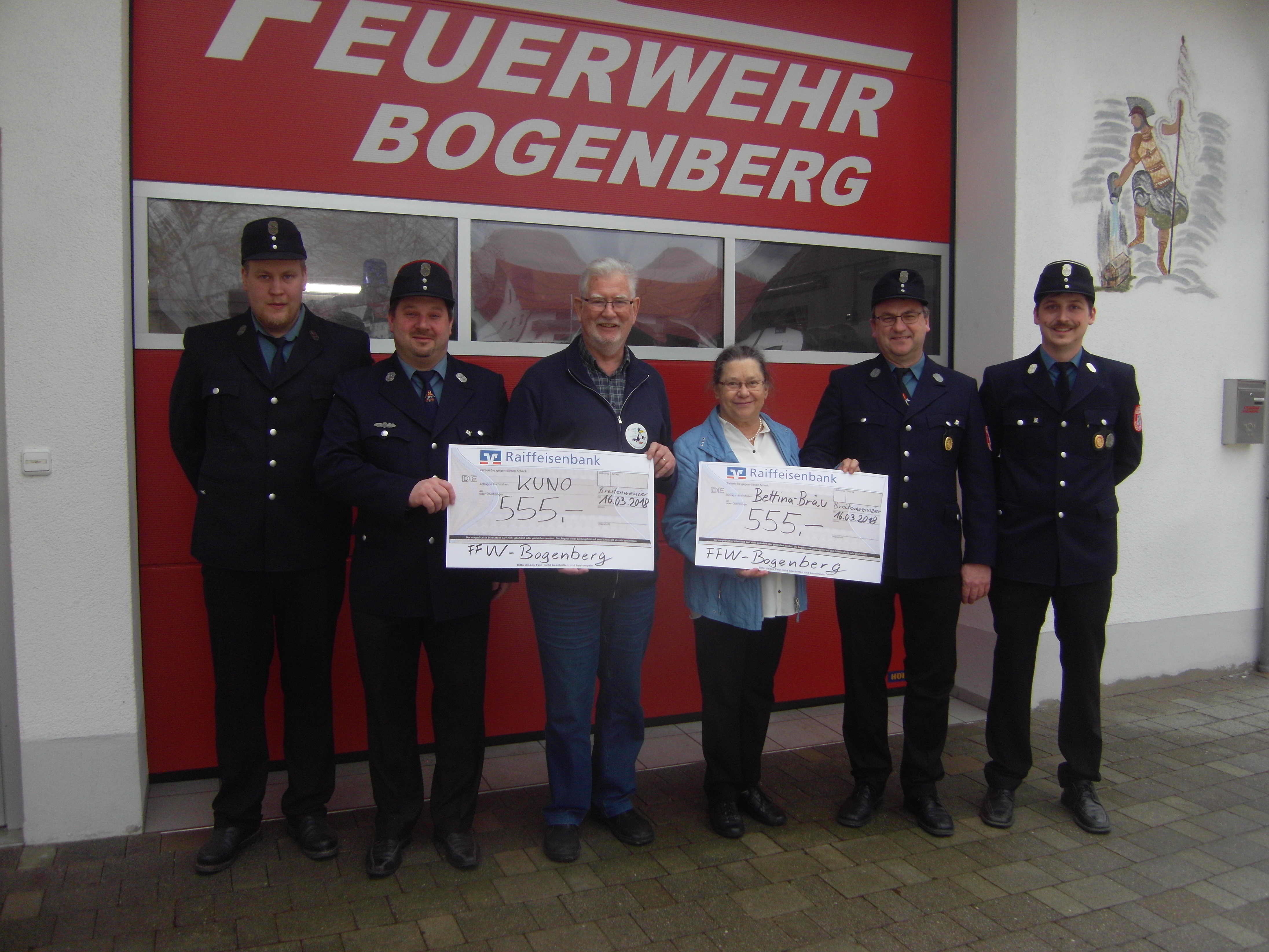 Die Freiwillige Feuerwehr Bogenberg wurde für die Cold-Water-Challenge nominiert und spendete einen Teil des Erlöses in Höhe von 555 Euro an die KUNO-Stiftung.