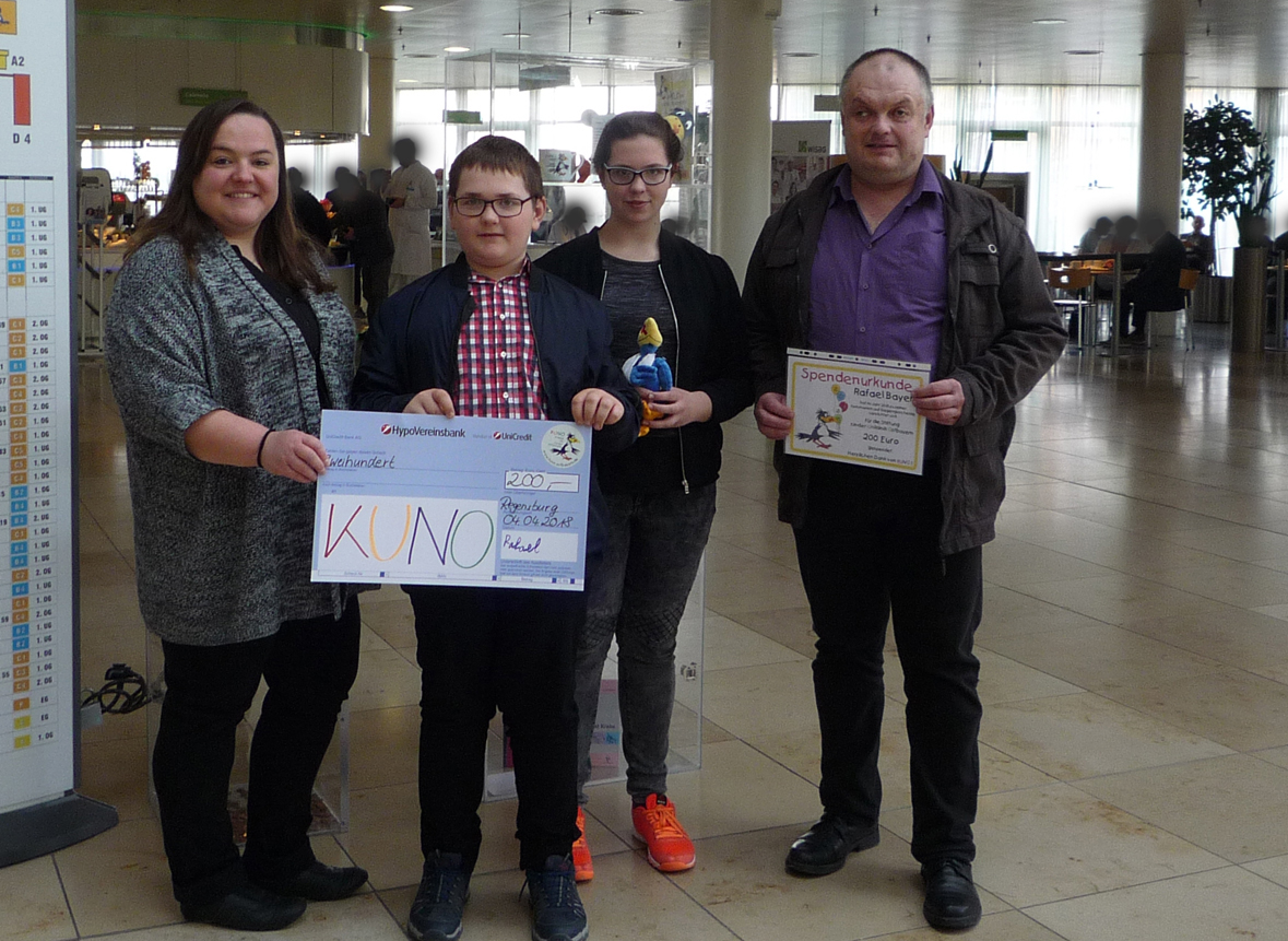 Erneute Spende von Familie Bayer anlässlich der Kommunion eines der Kinder. 2018 spendete Rafael 20oo Euro für KUNO und verzichtete dafür auf Gegengeschenke.