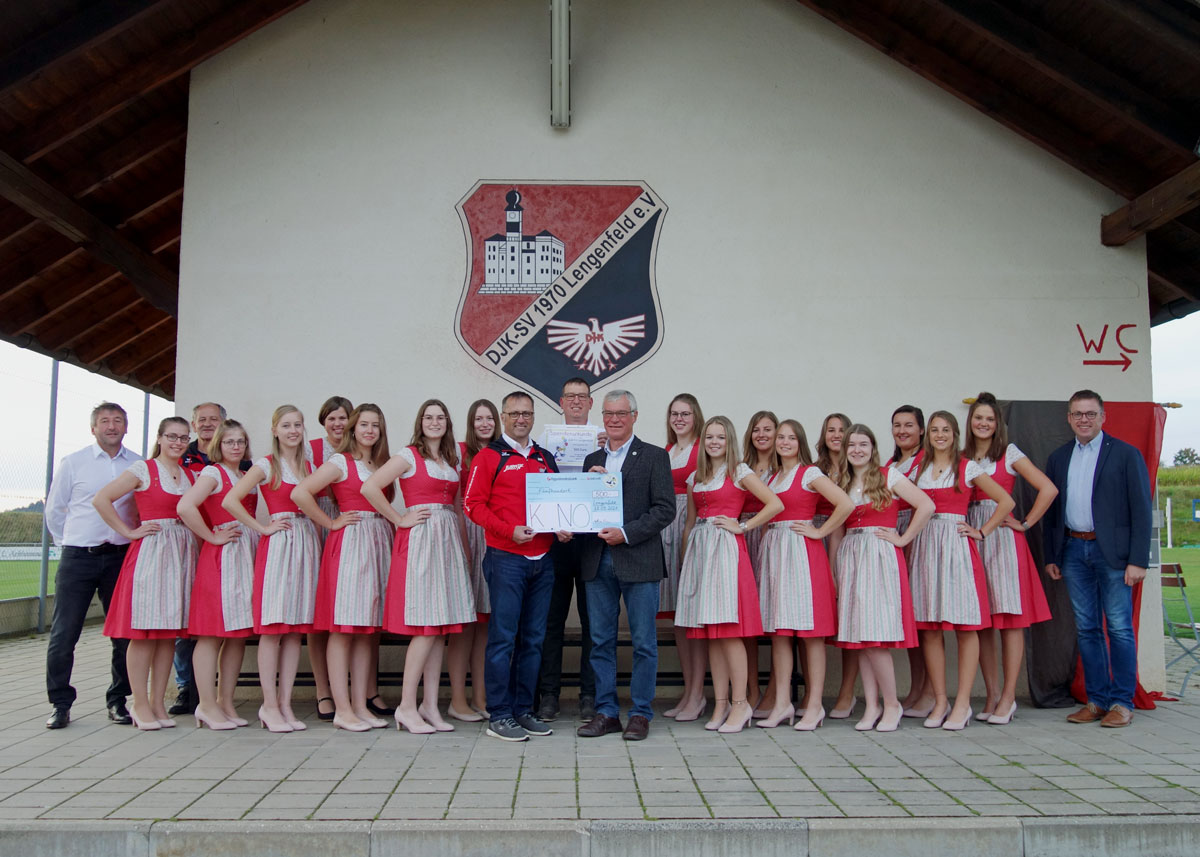 Die Festdamen des DJK-SV 1970 Lengenfeld haben sich mächtig ins Zeug gelegt. Mit diversen kleinen und großen Aktionen haben die Damen fleißig Geld für den guten Zweck gesammelt; dabei kamen insgesamt runde 500 Euro zusammen. Und als feststand, dass diese Spende an die KUNO-Stiftung gehen sollte, legten sich die Festdamen nochmal ins Zeug: standesgemäß im feschen Dirndl haben die Damen KUNO-Stiftungsvorstand Prof. Dr. Hugo Segerer im Vereinsheim Lengenfeld empfangen – zusammen mit Peter Scherer, Erwin Achhammer, Hermann Uhl und Bernhard Oettl vom SV Lengenfeld und dem Velburger Bürgermeister Christian Schmid. Vor dieser beeindruckenden Kulisse nahm Prof. Segerer die Spende im Namen der Kinder in den KUNO-Kliniken dankbar entgegen.