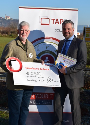 Wie bereits im Vorjahr verzichtete die TAP.DE Solutions GmbH darauf, den Kunden Weihnachtsgeschenke zu schicken und spendete den Betrag für einen guten Zweck. Auch heuer durfte sich die KUNO-Stiftung über eine Spende von 2.500 Euro zu Weihnachten freuen.
