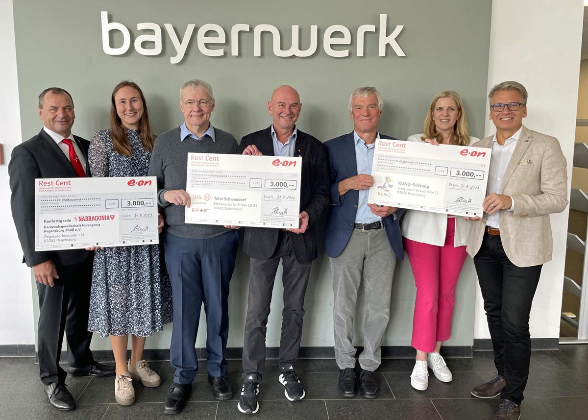 Insgesamt 9.000 Euro konnten diesmal vergeben werden, und freuen durften sich gleich drei Organisationen aus Ostbayern jeweils über eine Spende von 3.000 Euro: die Inklusive Konfettigarde der Karnevalsgesellschaft Narragonia Regensburg 1848 e.V., die Schwandorfer Tafel und auch die KUNO-Stiftung. Die Übergabe fand in der Regensburger Unternehmensleitung der Bayernwerk AG statt, dem regionalen Tochterunternehmen des E.ON-Konzerns. „Es ist eine große Freude für uns, dass wir die wertvolle Arbeit sozialer Initiativen in der Region unterstützen können“, sagte Lothar Haberzeth, Betriebsratsvorsitzender beim Bayernwerk für die Region Ostbayern und stellvertretender Vorsitzender des Spartenbetriebsrats. Vielen Dank für diese Unterstützung von KUNO!
