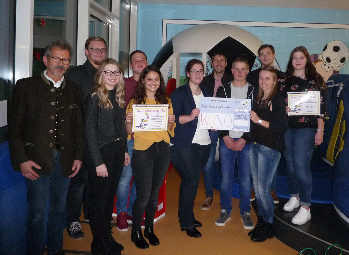 Die KLJB Dörfling und die KLJB Michelsneukirchen haben 2.800 Euro an KUNO gespendet. Bei einem Ausflug nach Regensburg in die KUNO-Klinik ließen es sich die Jugendlichen nicht nehmen, ihre Spende gemeinsam mit ihren Schirmherren persönlich zu überreichen. Die großzügige Summe ist im Rahmen des Landjugendfestes 2017 der KLJB’s zusammengekommen. Sie hilft jetzt, ein familien- und kindgerechtes Umfeld innerhalb der Klinik zu bewahren.