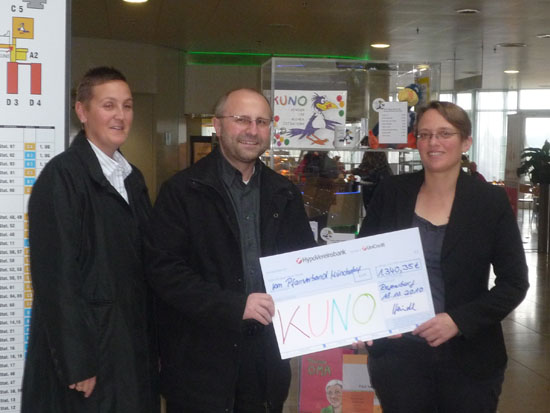 Die Spendenübergabe durch Pfarrer Hans Heindl an KUNO.