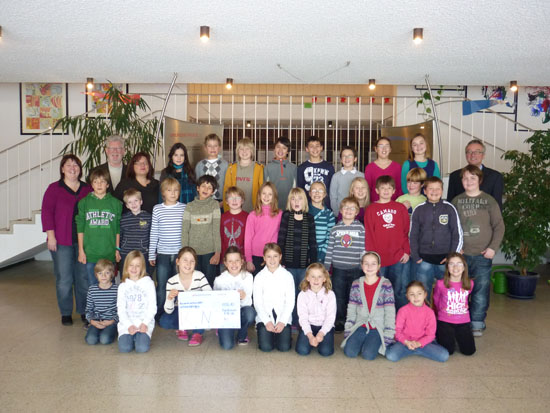 Glücklich über ihren großen Erfolg bei der Sammelaktion übergaben sie die Spende an Dr. H. Brockard, Vorsitzender der KUNO-Stiftung.