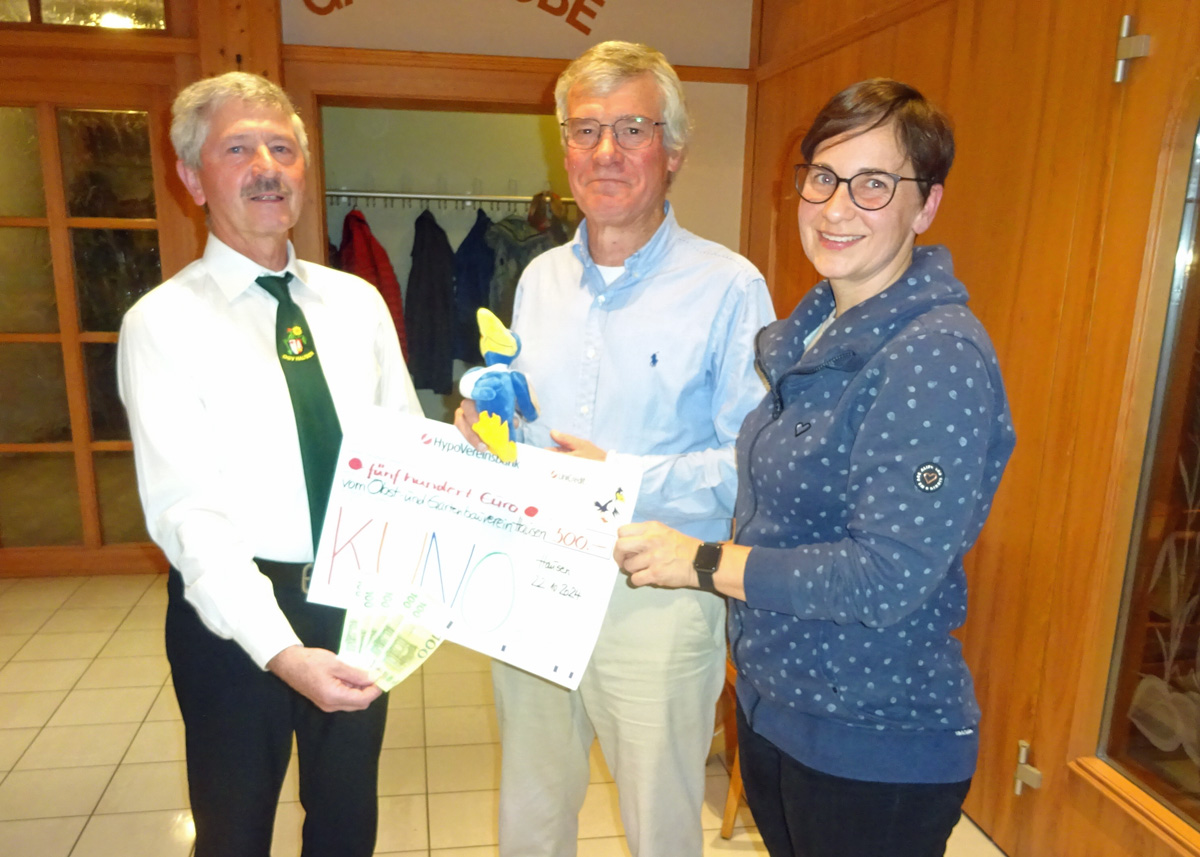 Der Obst- und Gartenbauverein Hausen hat in 2024 Kräuterbuschen gebunden und sie zugunsten der KUNO-Stiftung verkauft. der Erlös konnte sich sehen lassen, denn im Rahmen der Herbstversammlung aller Mitglieder übergab der Vorsitzende des Vereins, Herr Albert Uretschläger, die stolze Summe von 500 Euro an Prof. Segerer, Vorstand der KUNO-Stiftung. Bei dieser Versammlung wurde Prof. Segerer nicht nur sehr herzlich begrüßt, sondern auch, wie alle Teilnehmer der Versammlung, mit einem Teller ausgesprochen schmackhafter Kürbissuppe bewirtet. Dann hatte Segerer Gelegenheit, sich im Namen der KUNO-Stiftung bei den Spendern zu bedanken und ihnen kurz einen Überblick über die Fördermaßnahmen zugunsten bestmöglicher Versorgung kranker Kinder in den KUNO-Kliniken zu geben. Er durfte dann noch dem faszinierenden Vortrag eines Naturfotografen lauschen und seine Bilder bewundern, die das erstaunlich vielfältige Leben in einer Streuobstwiese zeigten. Es ist manchmal sehr spannend, im Namen von KUNO unterwegs zu sein – vielen Dank dafür!