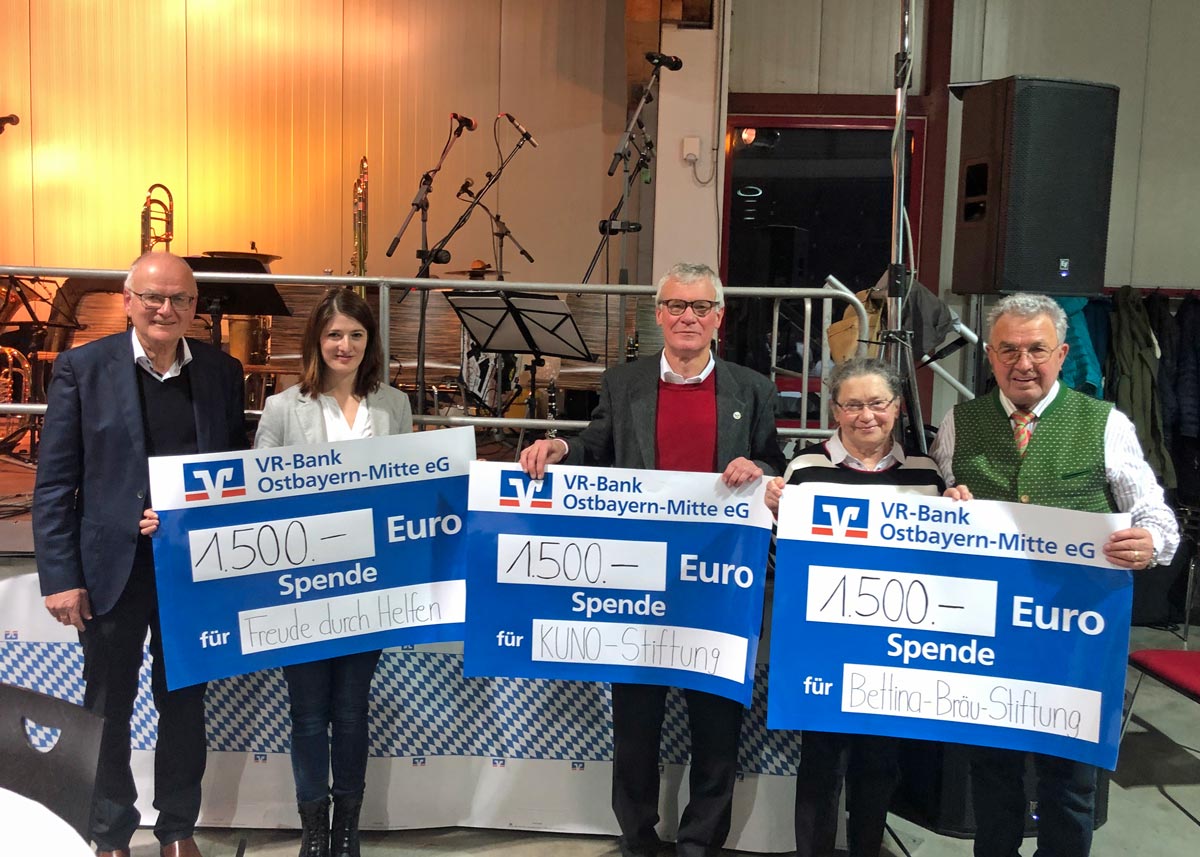 Und weil das Unternehmen mit der Weihnachtsfeier nicht nur den Mitarbeitern eine Freude machen möchte, hatten Geschäftsführer Herr Lausser und kaufmännischer Leiter Herr Sagstetter auch noch Geschenke für drei andere dabei: Die Bettina-Bräu-Stiftung, der „Freude durch Helfen“-Verein des Staubinger Tagblatts und die KUNO-Stiftung wurden im Rahmen der Feierlichkeiten mit einer Spende in Höhe von jeweils 1.500 Euro bedacht. Vielen herzlichen Dank für die Unterstützung!