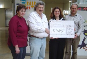 Traditionelle Tombola der Firma KNÜRR AG 13.01.2005 Am 13.01.2005 übergab eine Abordnung der Betriebsräte aus Arnstorf und Münchsdorf den Erlös aus unserer schon traditionellen Tombola, die während der Jahresabschlussfeier am 03.12.2004 in Hainberg stattfand, an die Aktion „KUNO“. Diese Tombola erbrachte einen überraschend hohen Erlös von knapp über 1.600 Euro.