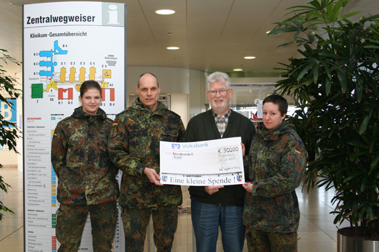 Blutspende-Aktion der Arnulf-Kaserne der Bundeswehr Roding - 900 Euro für KUNO Bei der Aktion spendeten die Soldatinnen und Soldaten der Arnulf-Kaserne Roding Blut. Den Erlös der Blutspendeaktion (zusammen mit dem Roten Kreuz) - 900 Euro - spendete man an KUNO. Der Scheck wurde von (v.l.n.r.) Stabsunteroffizier Nadja Ryll, Oberstleutnant