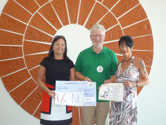 Wellnesshotel Reibener Hof spendet 400 Euro für KUNO 08.08.2013 Das Wellnesshotel Reibener Hof in Konzell machte eine Aktion für KUNO und spendete einen bestimmten Prozentsatz der Einnahmen von der Vermietung ausgewählter Zimmer. So konnte der Reibener Hof einen Betrag in Höhe von 400 Euro an die KUNO-Stiftung überreichen. Stiftungsvorstand
