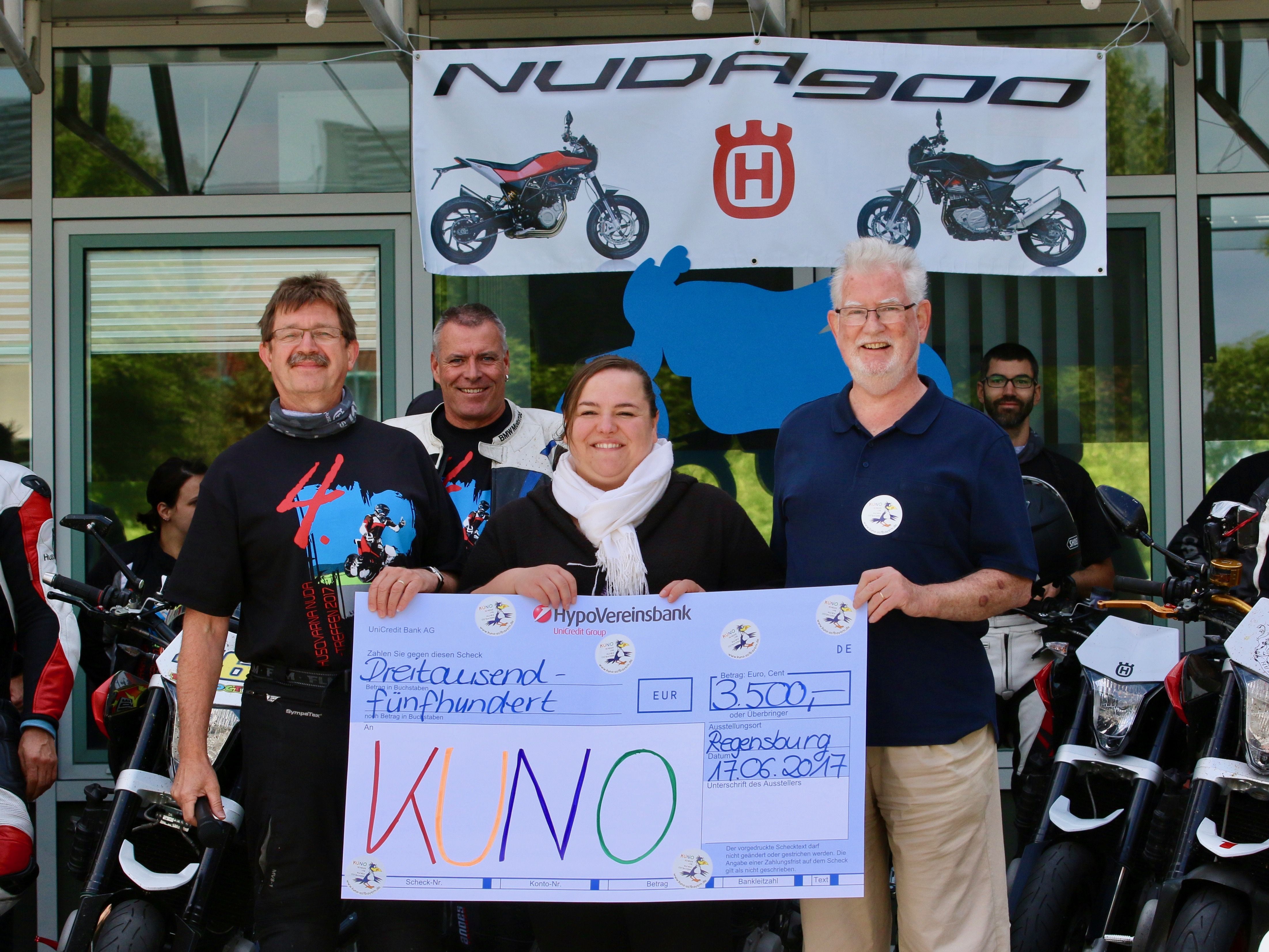 Rund 60 Motorräder touren durch den Bayerischen Wald und unterstützen einen guten Zweck. Husquarna Nuda-Fahrer spendeten auf ihrem jährlichen Motorradtreffen 3.500 Euro für KUNO.