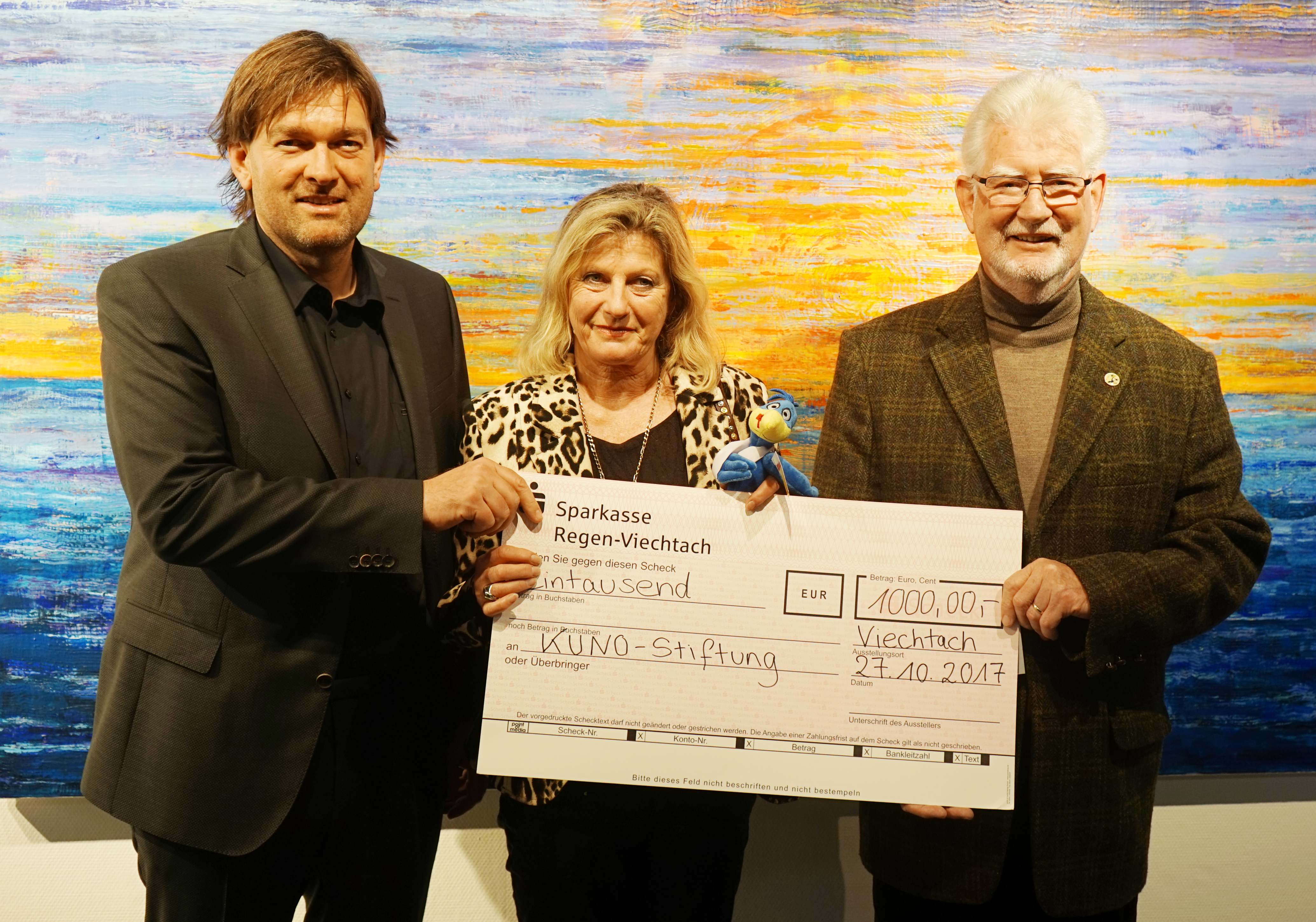 Die Arberlandklinik Viechtach gibt Künstlern die Gelegheit ihre Werke in deren Hallen auszustellen und dem Publikum zu präsentieren. Die Künstlerin Gaby Biller spendete den Erlös in Höhe von 1.000 Euro aus dem Verkauf ihrer Bilder an KUNO.