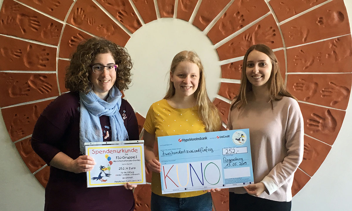Die FSJ-Gruppe I des Internationalen Bundes hat gegen Ende ihres Freiwilligen Sozialen Jahres mit einem Infostand auf dem Haidplatz rund 252 Euro für KUNO gesammelt.