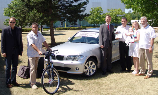 Über den ersten Preis, einen BMW 118i freute sich Helmut Balk aus Wiesent. Den zweiten Hauptpreis, ein BMW Touring Bike und ein Navigationssystem (gestiftet von Siemens VDO) erhält Peter Müller aus Bach a.d. Donau, und der dritte Hauptpreis, ein BMW Kofferset und ein Navigationssystem (gestiftet von Bosch) geht an Karsten Eibach aus Regensburg |