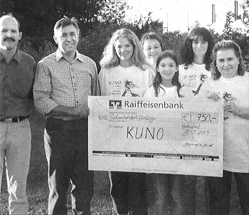 Trachtenverein Vilsbiburg spendet an KUNO 10.10.2004 Beim Dionysi-Markt in Vilsbiburg am 10.10.04 warb die Jugend des Trachtenvereins Vilsbiburg einen ganzen Tag für KUNO. Die Marktbesucher konnten KUNO-T-Shirts, Tassen und Krüge