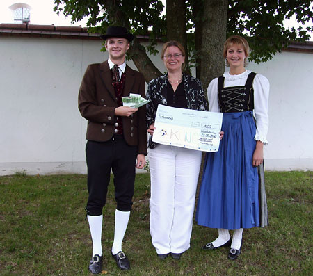 Trachtenjugend Moosthenning spendet für KUNO 23.08.2006 Am Mittwoch, 23. August, erhielt die Trachtenjugend Moosthenning Besuch. KUNO-Vertreterin Cordula Heinrich von den Förderern der Kinder-Uni-Klinik-Ostbayern (KUNO) besuchte die Jugend des Heimat- und
