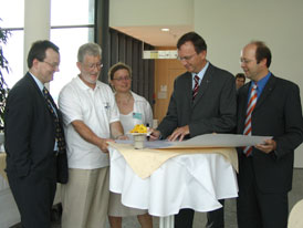 Werkleiter Erhard Frank und Betriebsratsvorsitzender Werner Zierer übergaben im Uni-Klinikum die Mitarbeiterspende an KUNO-Vertreter Dr. Hans Brockard.