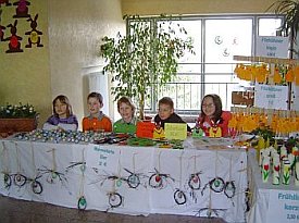 Schüler der Volksschule Bad Birnbach verkauften österliche Bastelarbeiten, Spiele und Bücher sowie Speisen und Getränke. So kamen 400 Euro für KUNO zusammen.