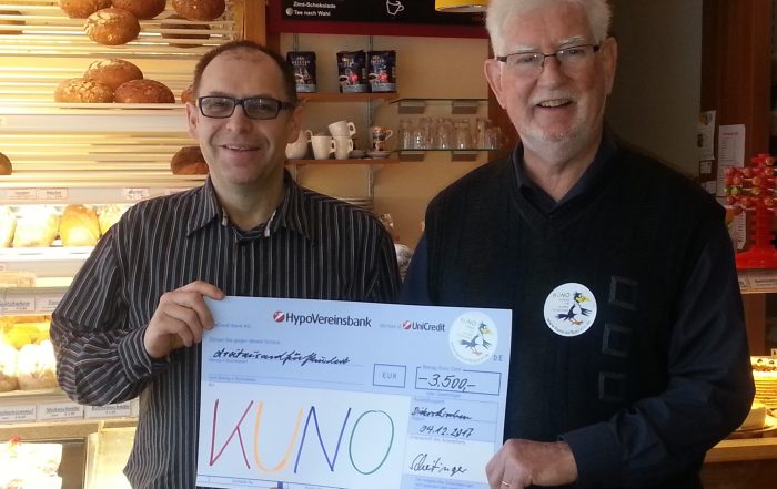 Die Freiwillige Feuerwehr Velburg hat im Dezember 2017 anlässlich des 150-jährigen Jubiläums und die Freiwillige Feuerwehr Oberwiesenacker anlässlich des 125-jährigen Jubiläums jeweils 500 Euro an KUNO gespendet.