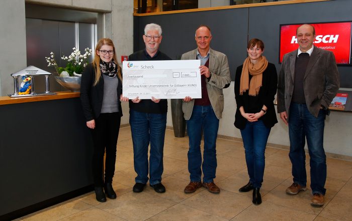 Die Trainees des Unternehmensverbundes Oberpfalz Mittelfranken spenden Erlös aus Führungskräfte-Nachmittag. Nachdem sich die Firmen des Unternehmensverbundes angeschlossen hatten konnten 2.000 Euro an KUNO übergeben werden.