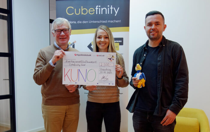 Die Cubefinity GmbH aus Straubing unterstützt schon zum viertel Mal die KUNO-Stiftung in der Vorweihnachtszeit - vielen herzlichen Dank dafür!