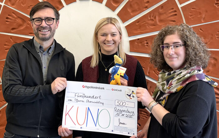 Ein volles Pfarrheim, faire Produkte und ein großartiges Ergebnis: Beim „Fairen Frühstück“ der Pfarrei Oberwinkling kamen 500 Euro für KUNO zusammen. Gemeindereferentin Frau Schneider brachte die Spende persönlich nach Regensburg.