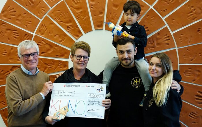 Das Team von Haustechnik Koller aus Hemau hat die KUNO-Klinik besucht, um persönlich eine Spende an KUNO zu übergeben - dabei durfte der Juniorchef nicht fehlen.