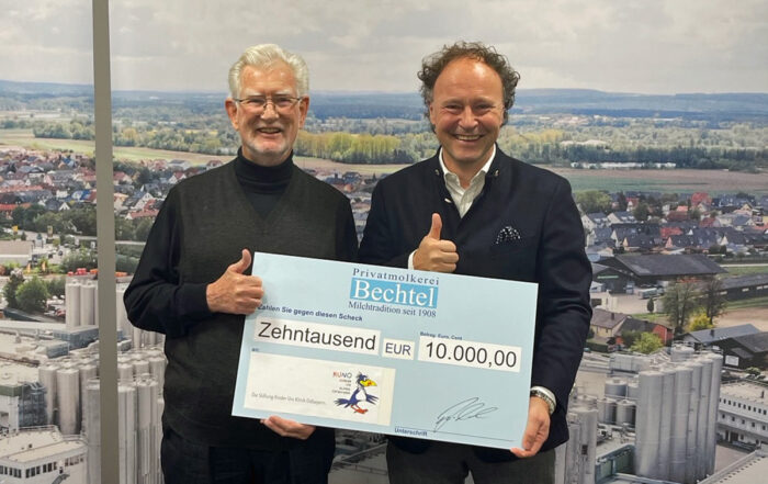 Jedes Jahr vergibt die Privatmolkerei Bechtel aus Schwarzenfeld Spenden an gemeinnützige Organisationen. Bei der diesjährigen Jahresspende durfte sich auch KUNO wieder über finanzielle Unterstützung freuen.