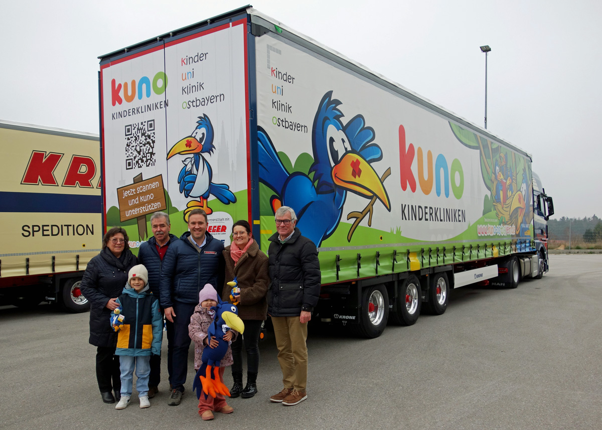 Die Spedition Krieger aus Rottenburg an der Laaber ist seit ihrer Gründung 1946 ein Familienunternehmen mit Herz – und einem großen Fuhrpark, der immer mal wieder ergänzt wird. Eine Leukämie-Erkrankung in der fünften, noch sehr jungen Generation der Kriegers brachte die Familie in die KUNO-Klinik am Uniklinikum Regensburg und mit dem Klinikaufenthalt kam eine Erkenntnis: auch in einem Land wie Deutschland ist ein kind- und familiengerechter Aufenthalt in einer Kinderklinik mit intensiver Betreuung kaum ohne die zusätzliche finanzielle Unterstützung durch gemeinnützige Organisationen möglich.