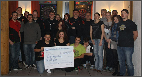 Am 30. u. 31.10.2011 haben der DC Frieden Pleußen und der DC Beetles Pirk gemeinsam das Benefiz-Dart-Turnier zugunsten der Stiftung Kinder-Universitätsklinik für Ostbayern veranstaltet. Als Ergebnis dieser Aktion konnte eine Spende in Höhe von 2.580 Euro an KUNO übergeben werden. Der Betrag wurde von beiden Clubs zusammen erspielt und setzt sich aus den Startgebühren, dem Erlös aus der Tombola und den Geldspenden zusammen (DC Frieden Pleußen 1.202,- € und DC Beetles Pirk 1.378,- €).