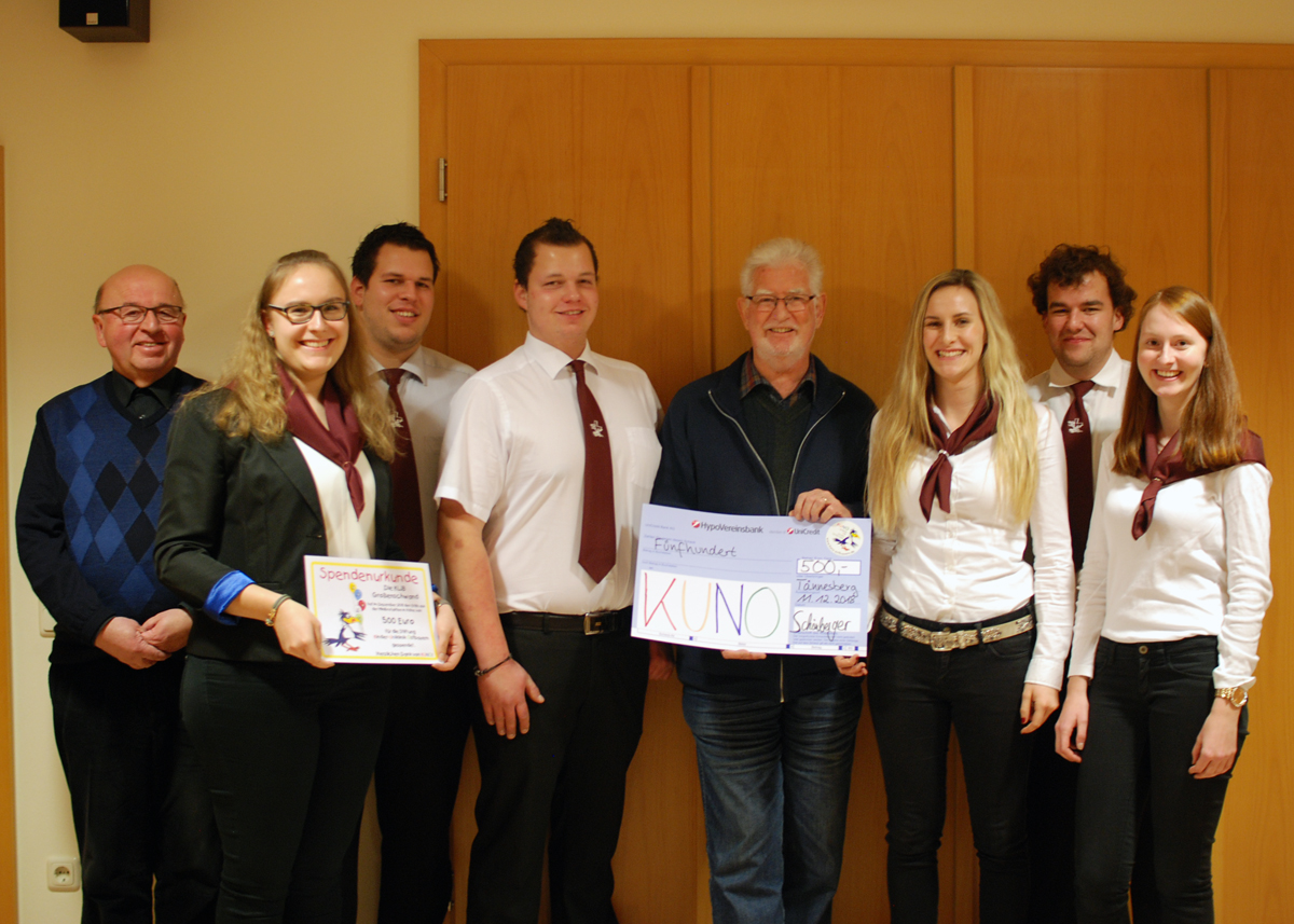 Der Gemütlichkeitsverein Neuenhinzenhausen/Sollern hat anlässlich seiner Weihnachtsfeier 2018 für die KUNO-Stiftung insgesamt 550 Euro gesammelt.