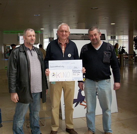 Aufgestockt durch den Inhaber und der Belegschaft der Firma Jehl sowie durch Roland Konopiski, Pächter der Stadthalle im Naabtalpark, konnte sich KUNO über eine Betrag von 250 Euro freuen, der am 29. April 2008 an KUNO-Vertreter Günter Ossadnik überreicht wurde.