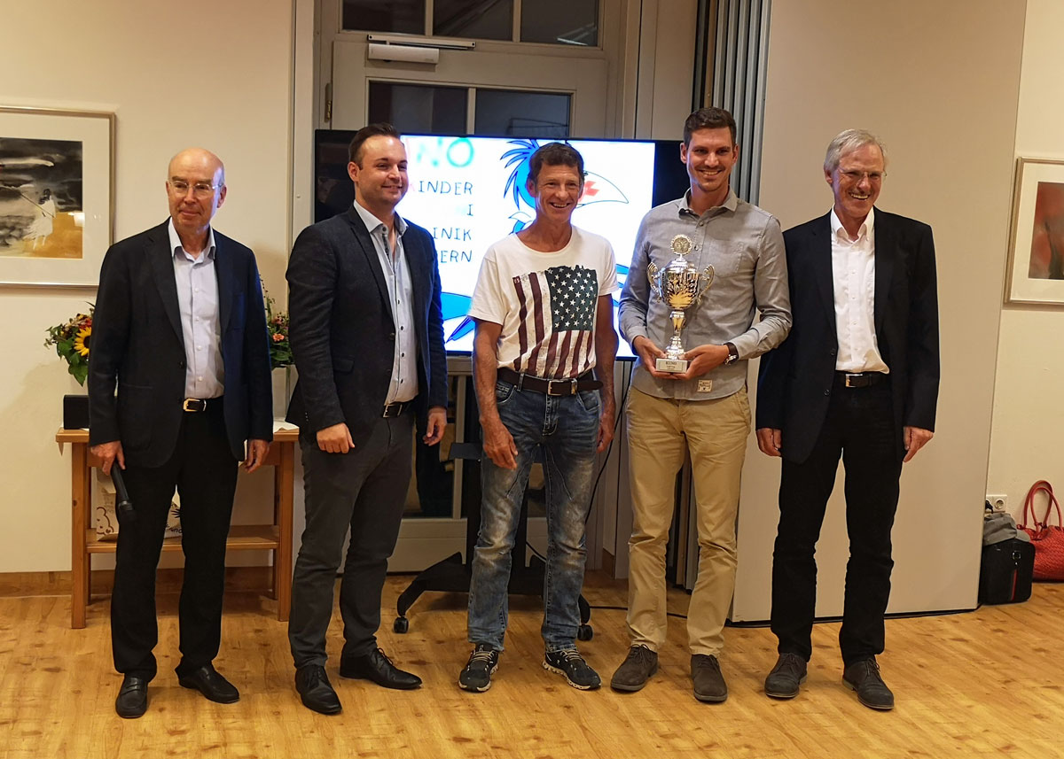 Der Wanderpokal wurde den stolzen Siegern von Prof. Dr. Nerlich (links) und GC-Präsident Prof. Wagenhäuser (rechts) überreicht. (Foto: Cornelia Brockard)